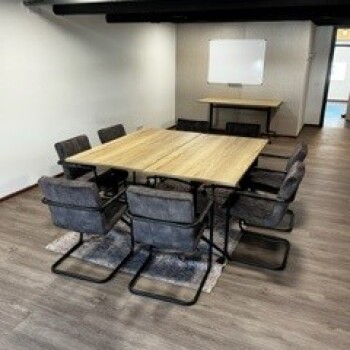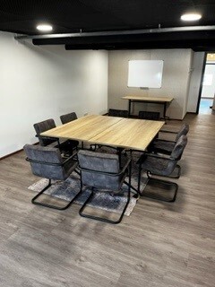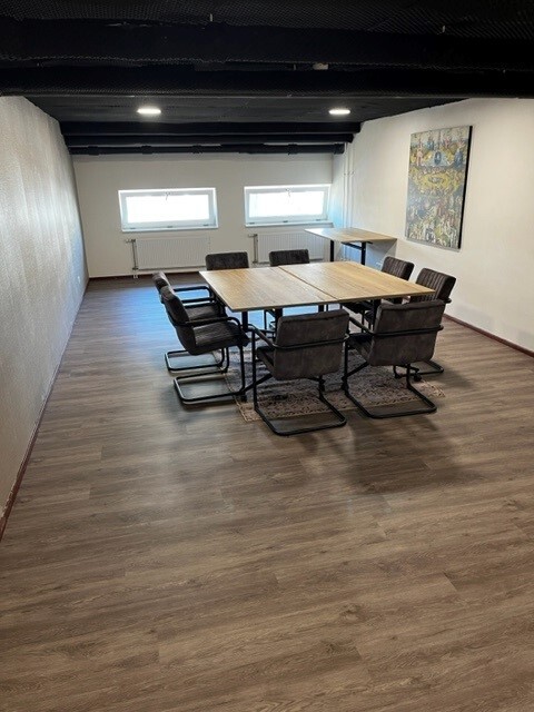 Standaard ingericht met 8 stoelen en 4 grote tafels (180 x 60), maar is zeker geschikt voor een groep tot 15 personen.