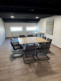 Standaard ingericht met 8 stoelen en 4 grote tafels (180 x 60), maar is zeker geschikt voor een groep tot 15 personen.
