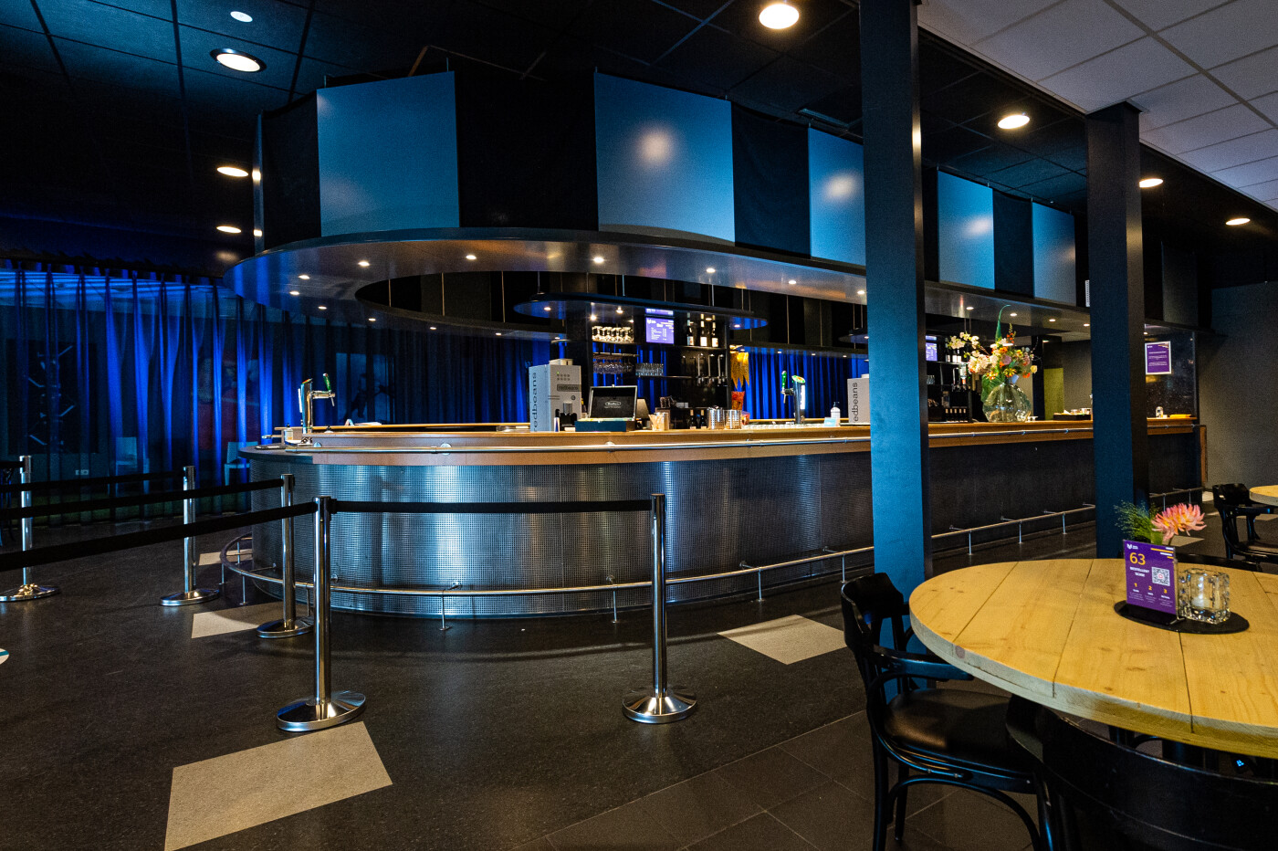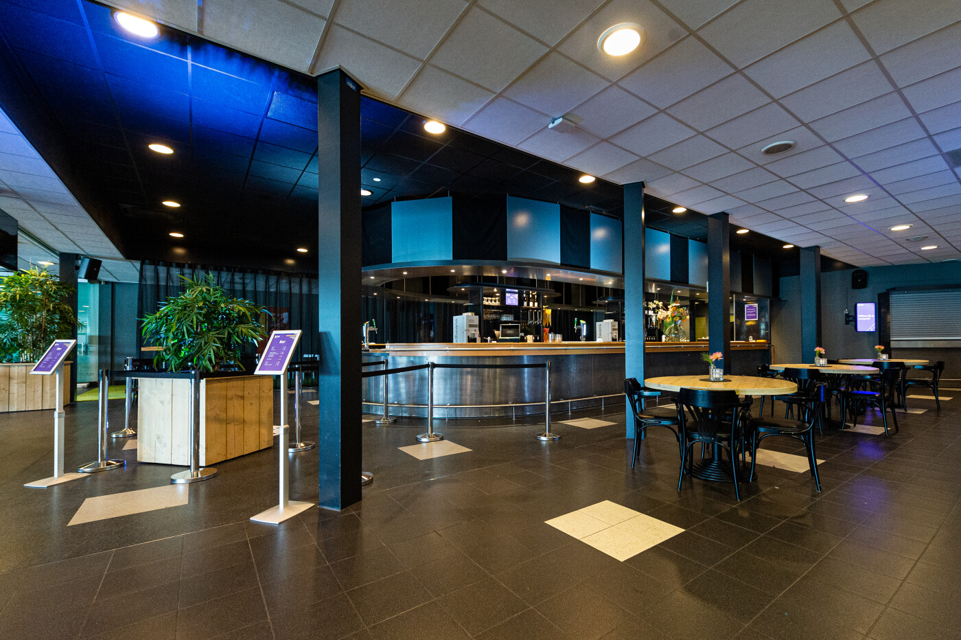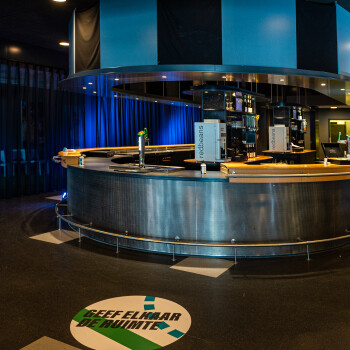 De Foyer heeft een moderne uitstraling en door toevoeging van licht is deze ruimte in een handomdraai aan te passen aan jouw bedrijfskleuren.