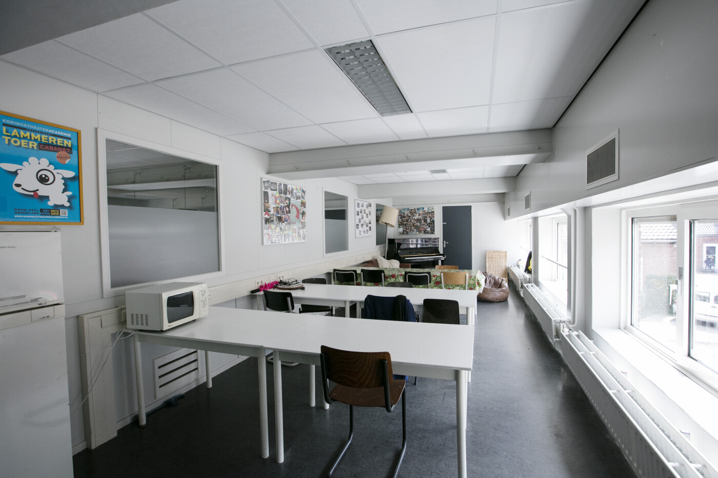 Aanwezige voorzieningen: Toiletten, keuken, kantine, 2 kleedkamers met douches van ca. 11 m2