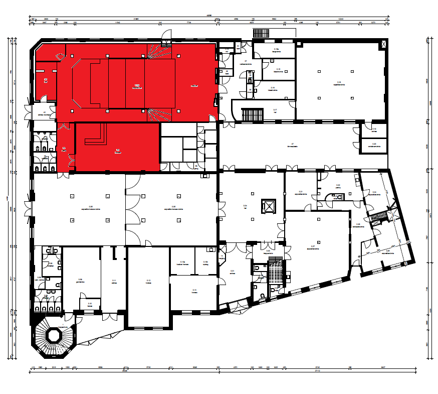 Grote zaal: 550 personen (150 zitplaatsen)